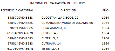 La relación de edificaciones de tipología residencial colectiva (bloques de pisos) que deberán presentar el Informe de Evaluación de los Edificios (IEE) en Alcobendas en 2019 son: